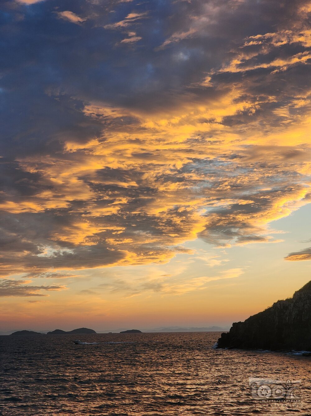 Вид на закатные облака и море с берега острова Рейнеке